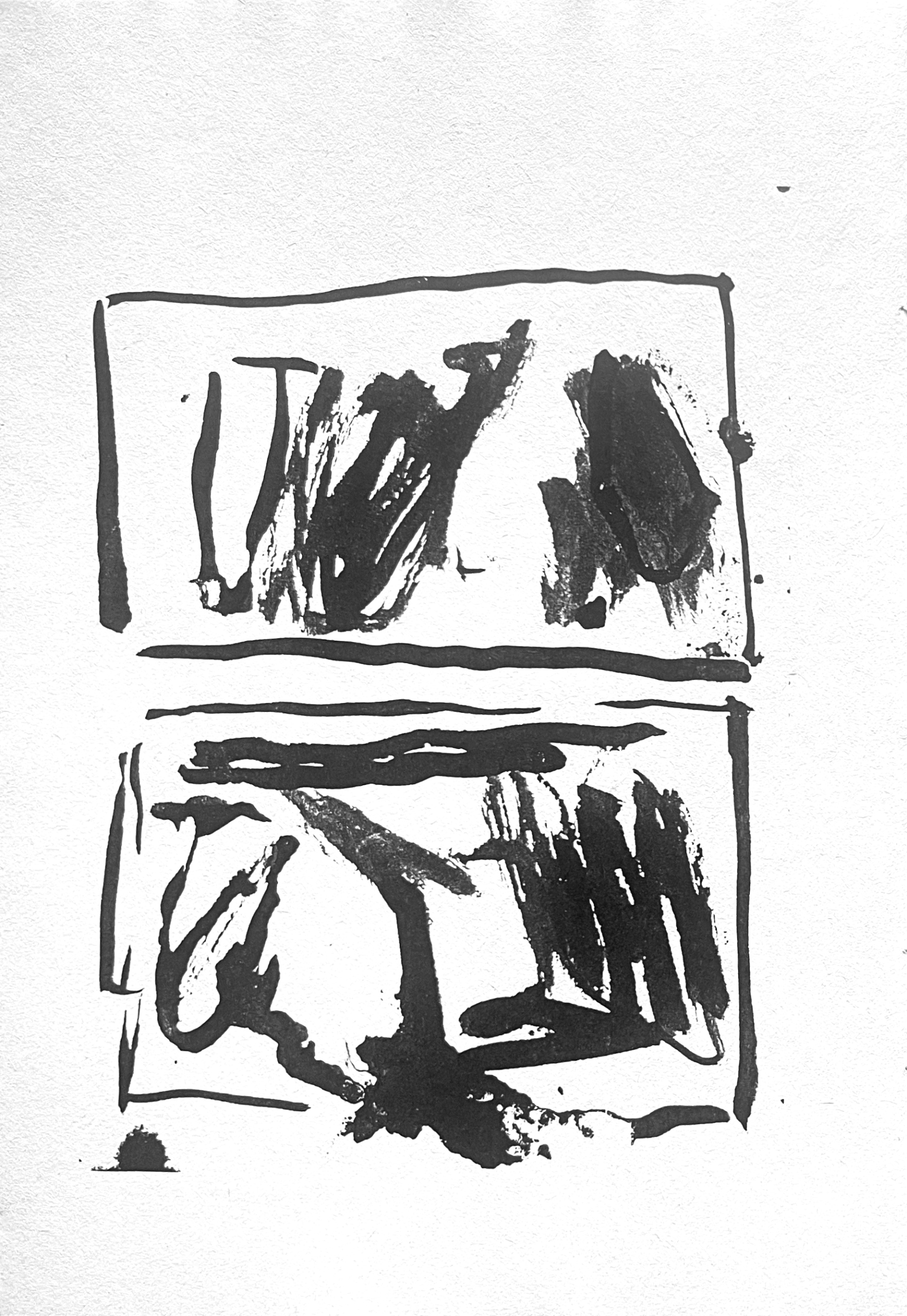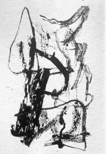 Atelier d’été 1992, dessins à bâtons rompus pour des paysages de garrigues, avec buissons, touffes et quelques capitelles