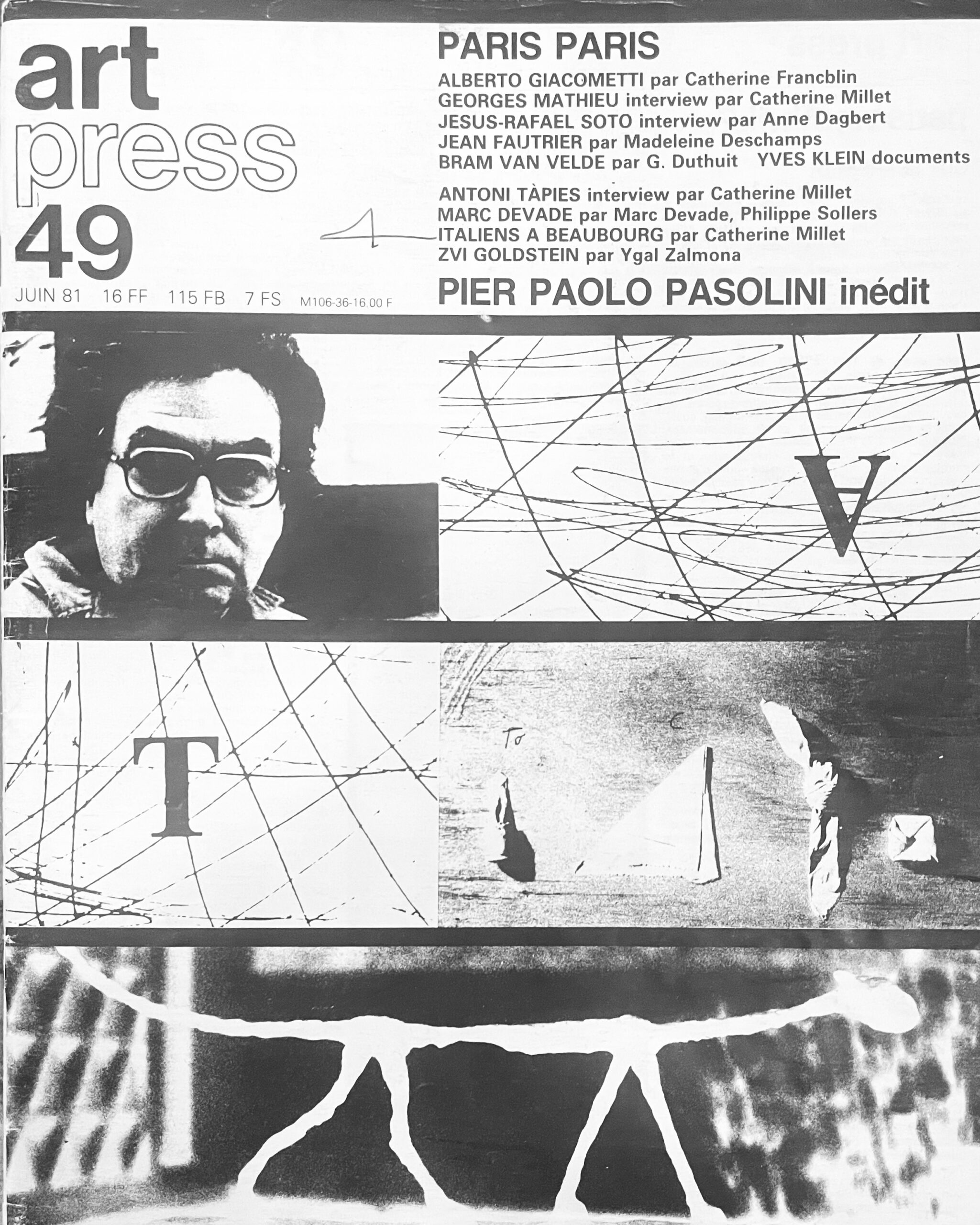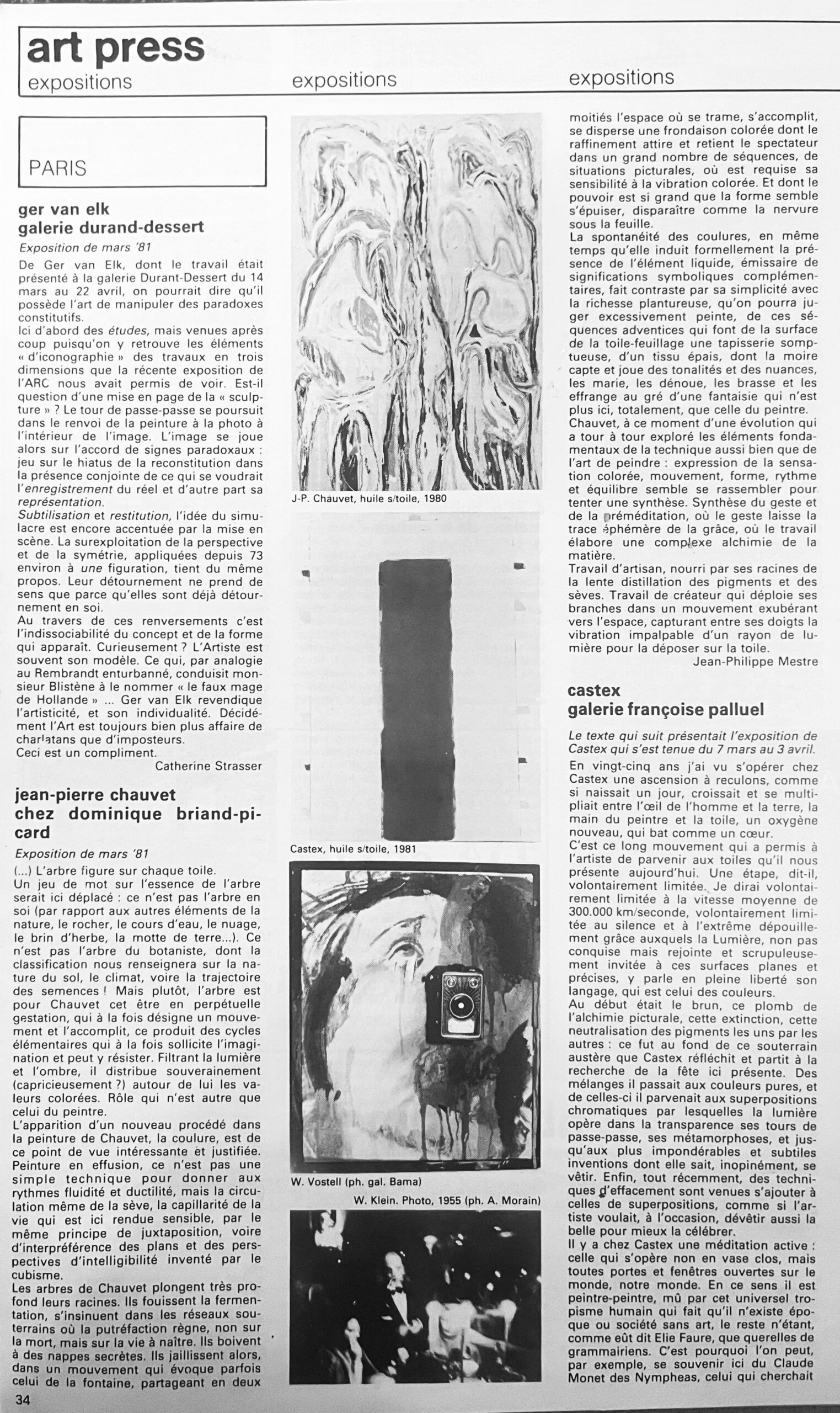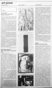 “Jean-Pierre Chauvet chez Dominique Briand-Picard, Exposition de mars ’81”, Art Press N°49, Paris, 1981