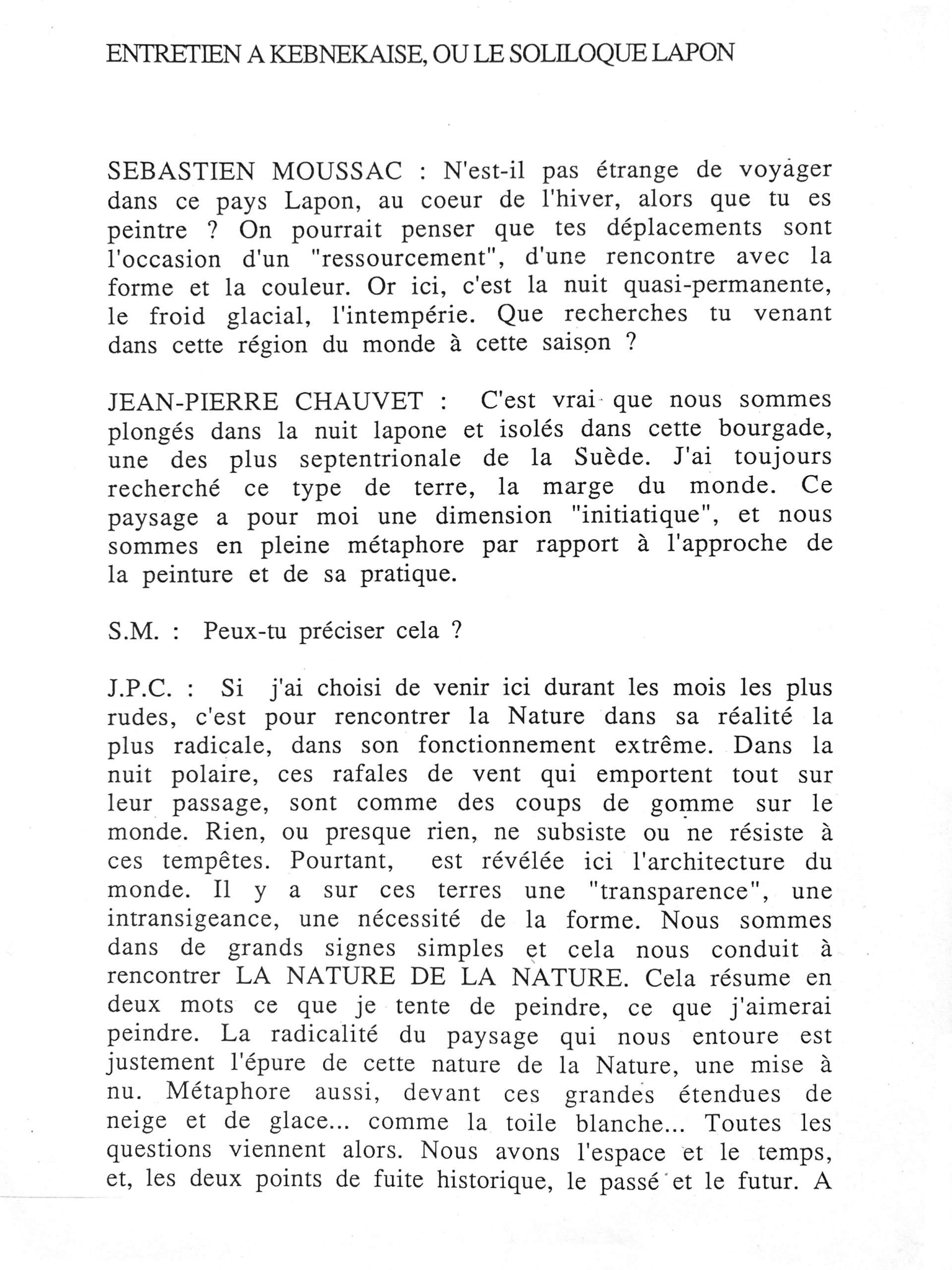 Entretien à KEBNEKAISE, ou le soliloque LAPON, avec Sébastien Moussac, 1990